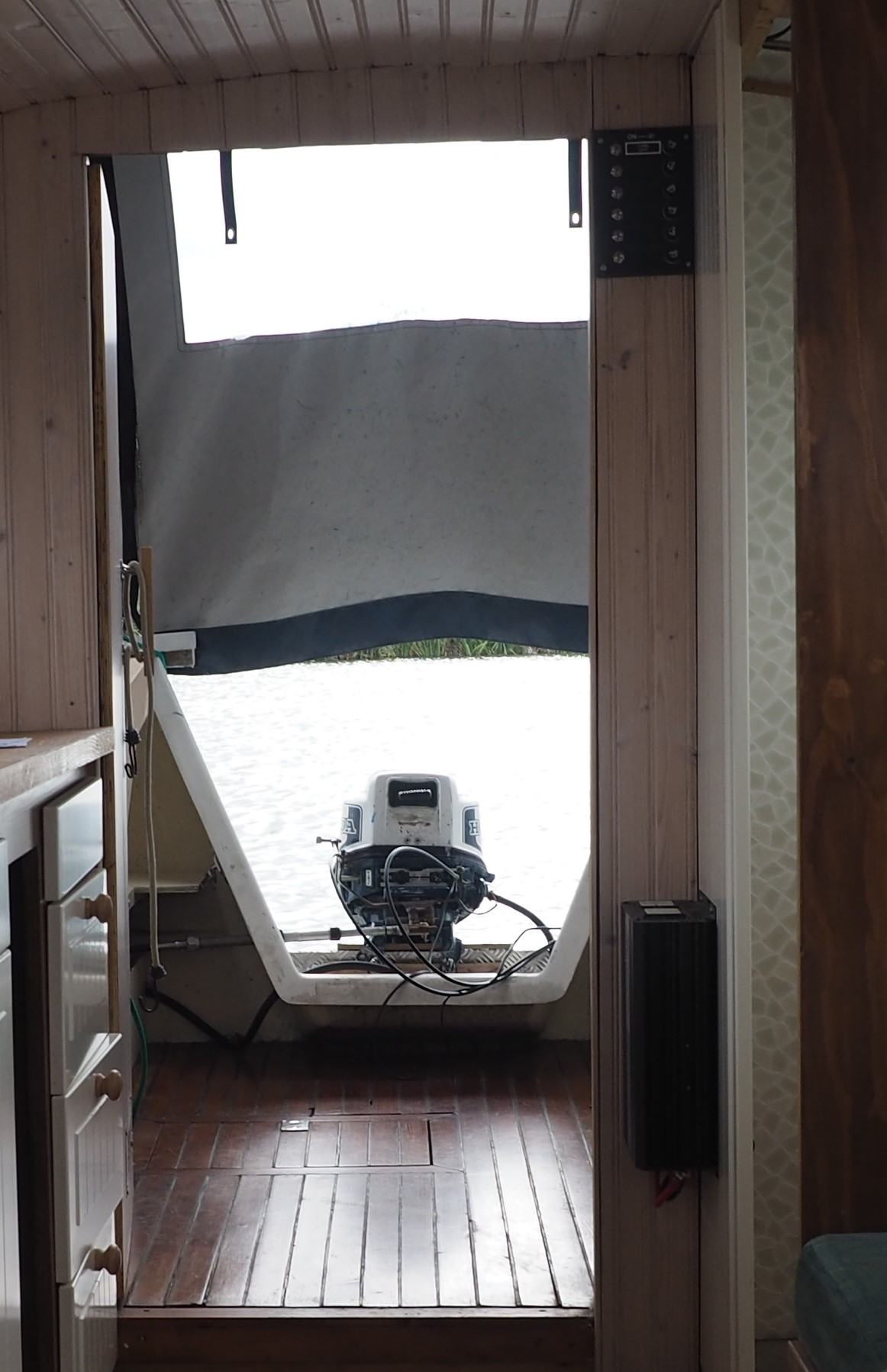 I'd like to cover this with a single sheet of ply or suitable material. (To keep the weather out over the winter and also to keep the engine more "on the outside" of the cockpit when cruising). I will need to be able to remove this cover easily in order to start the engine. I was thinking of some way of allowing the covering board to slide up and down in runners. I was just wondering if anyone has found a better way to do this and might be able to tell me how they did it. Grateful for any advice/ideas as always. I'm adding 2 photos to help show where the cover needs to go.